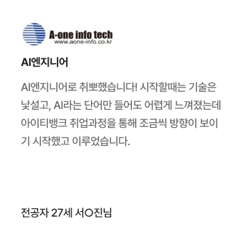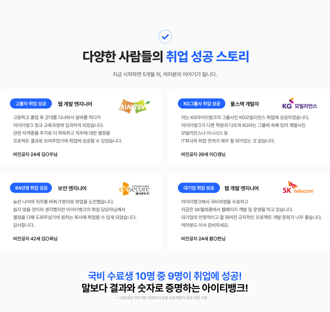 여러 IT학원을 찾아봤지만 아이티뱅크의 후기가 좋았고