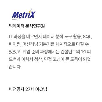 실전 중심의 1:1 맞춤형 취업 컨설팅 제공.