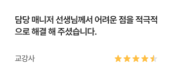 강사님의 배려와 열정 덕분에 많은 도움이 되었습니다.